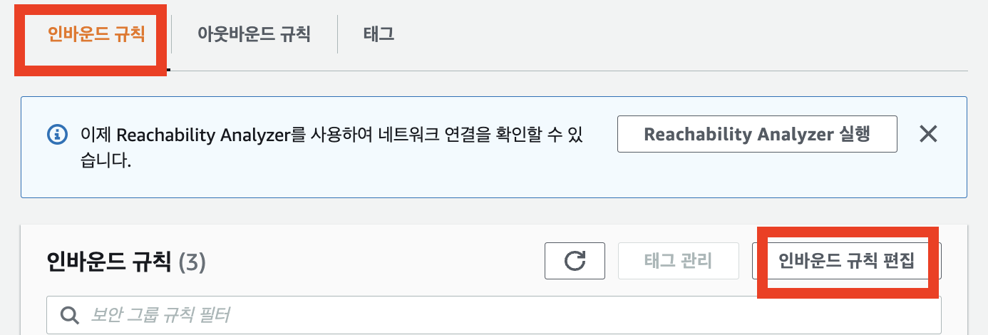 4) 인바운드 규칙을 설정하여 Nginx의 포트를 개방합니다.