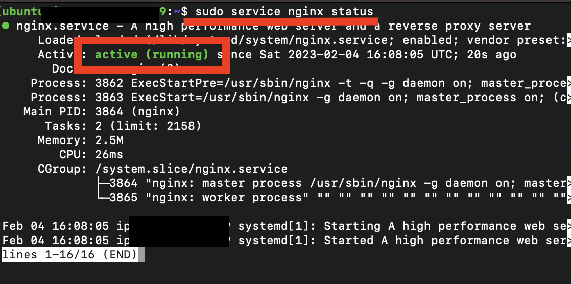 - Nginx를 처음 설치하면 실행되지 않고 있기 때문에 실행하도록 명령어를 입력합니다.