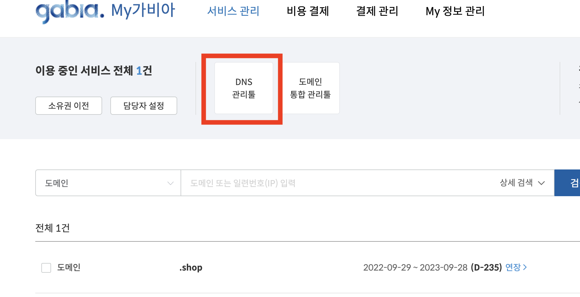 2) DNS 관리툴 버튼을 선택합니다.