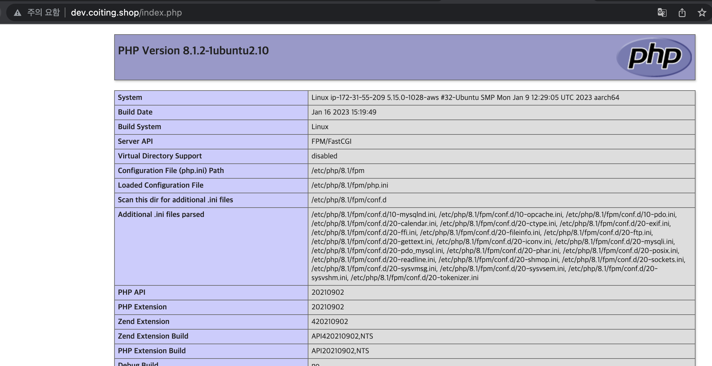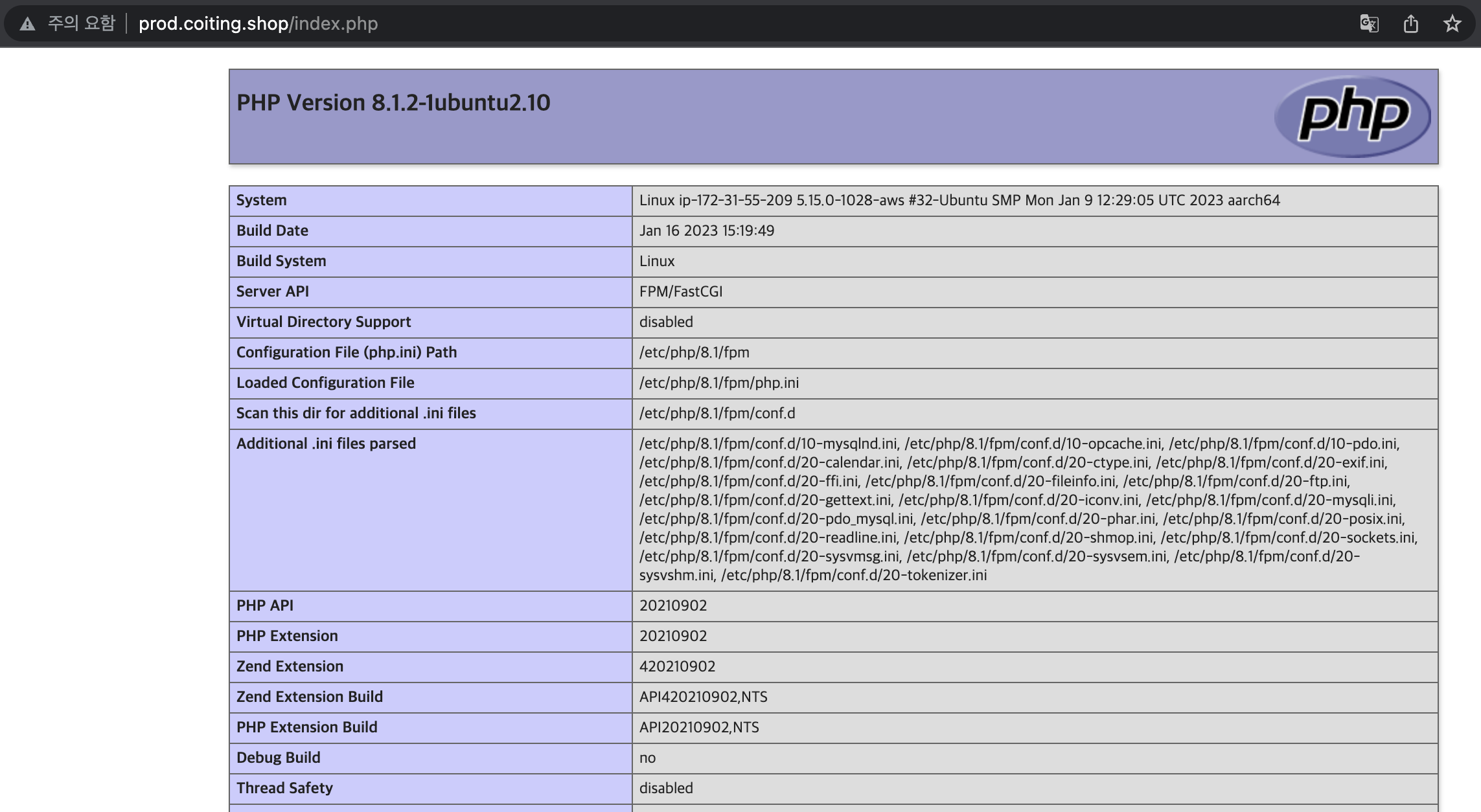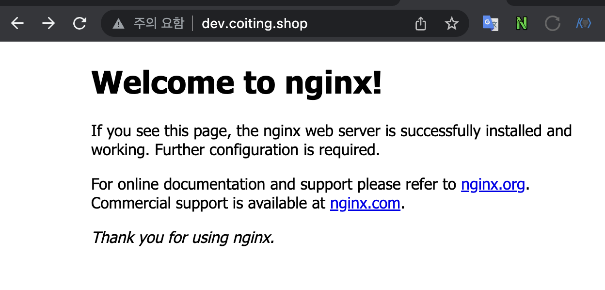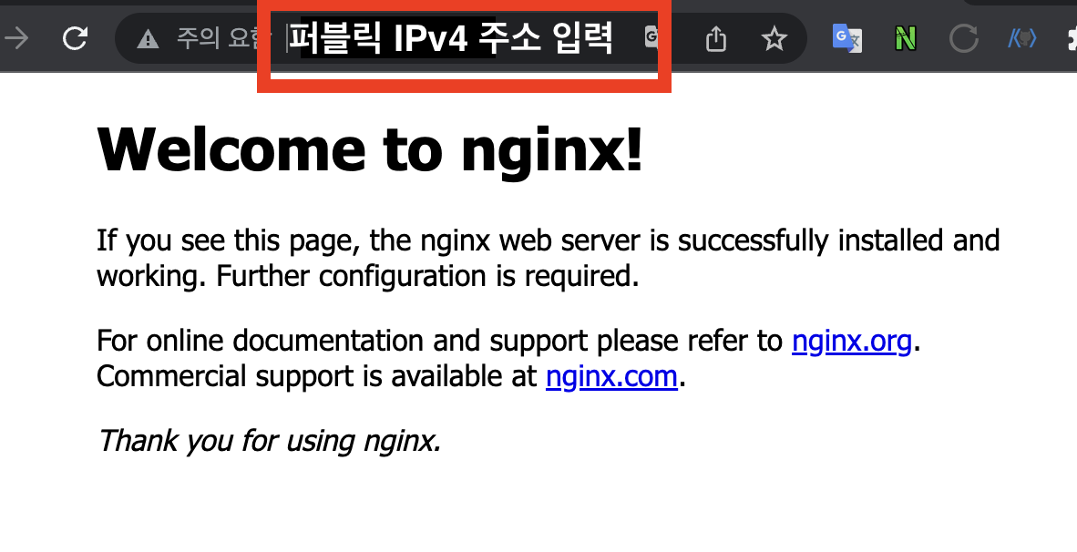 4) 주소창에 퍼블릭 IPv4 주소를 입력하면 도메인으로 연결되는 것을 확인할 수 있습니다.