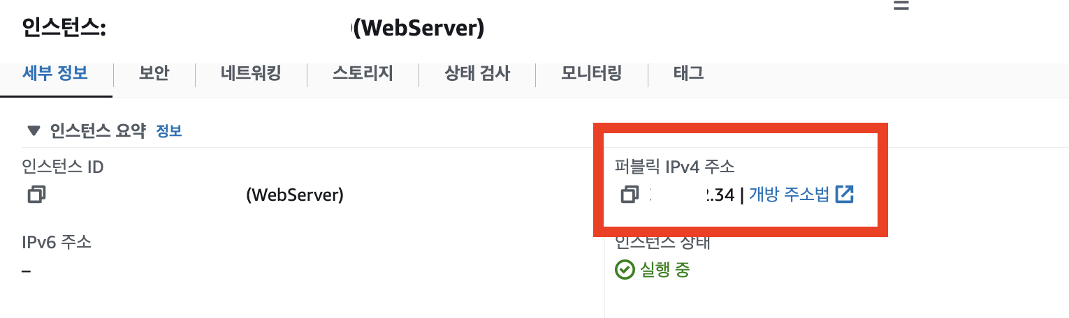 - AWS EC2 인스턴스에서 퍼블릭 IPv4 주소를 복사하고 url창에 입력합니다.