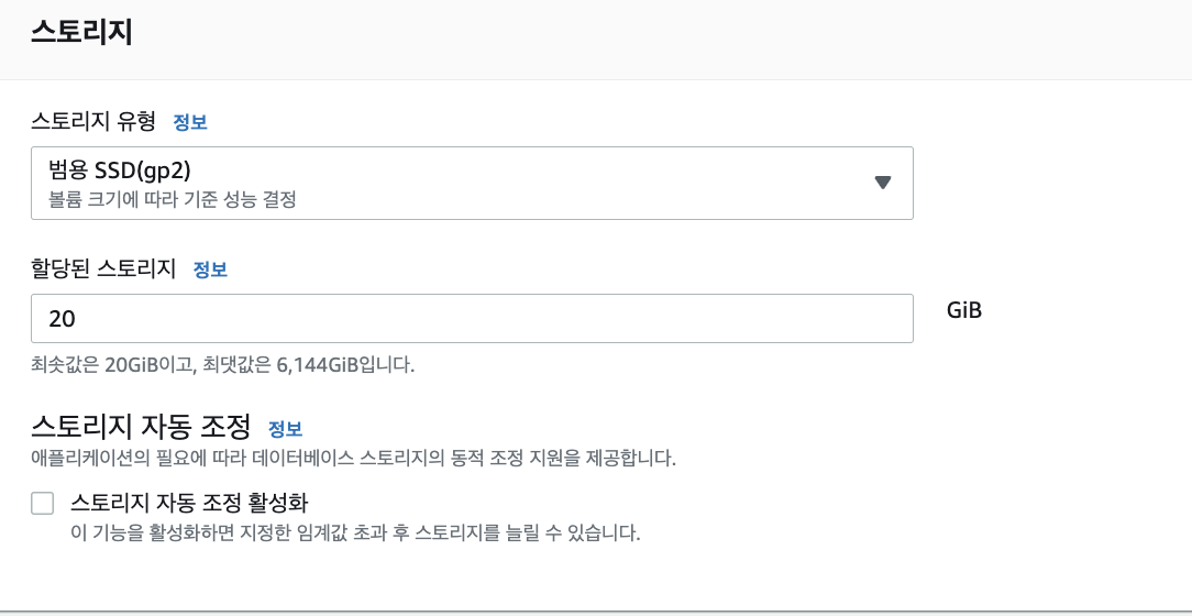 - 스토리지 자동 조정 체크를 해제해주었습니다.