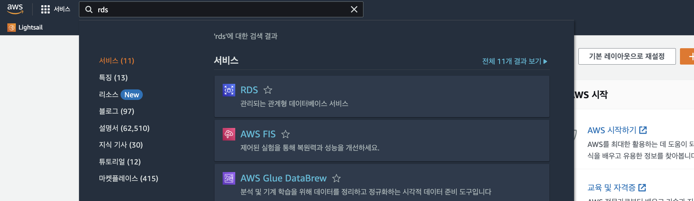 - 아래 링크로 AWS에 접속하여 RDS 서비스를 검색하여 Amazon RDS 대시보드 페이지로 들어갑니다.