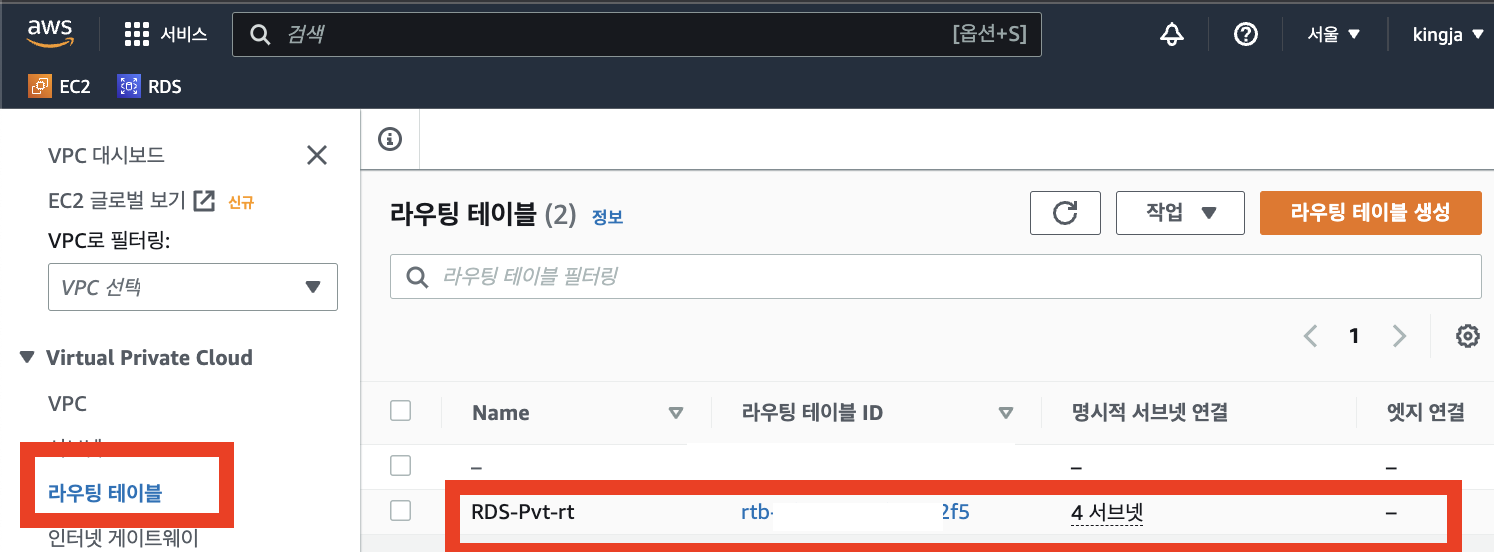 💊 만약 연결이 안된다면 Private 서브넷을 Public 서브넷으로 변경합니다. (라우팅 테이블 수정)