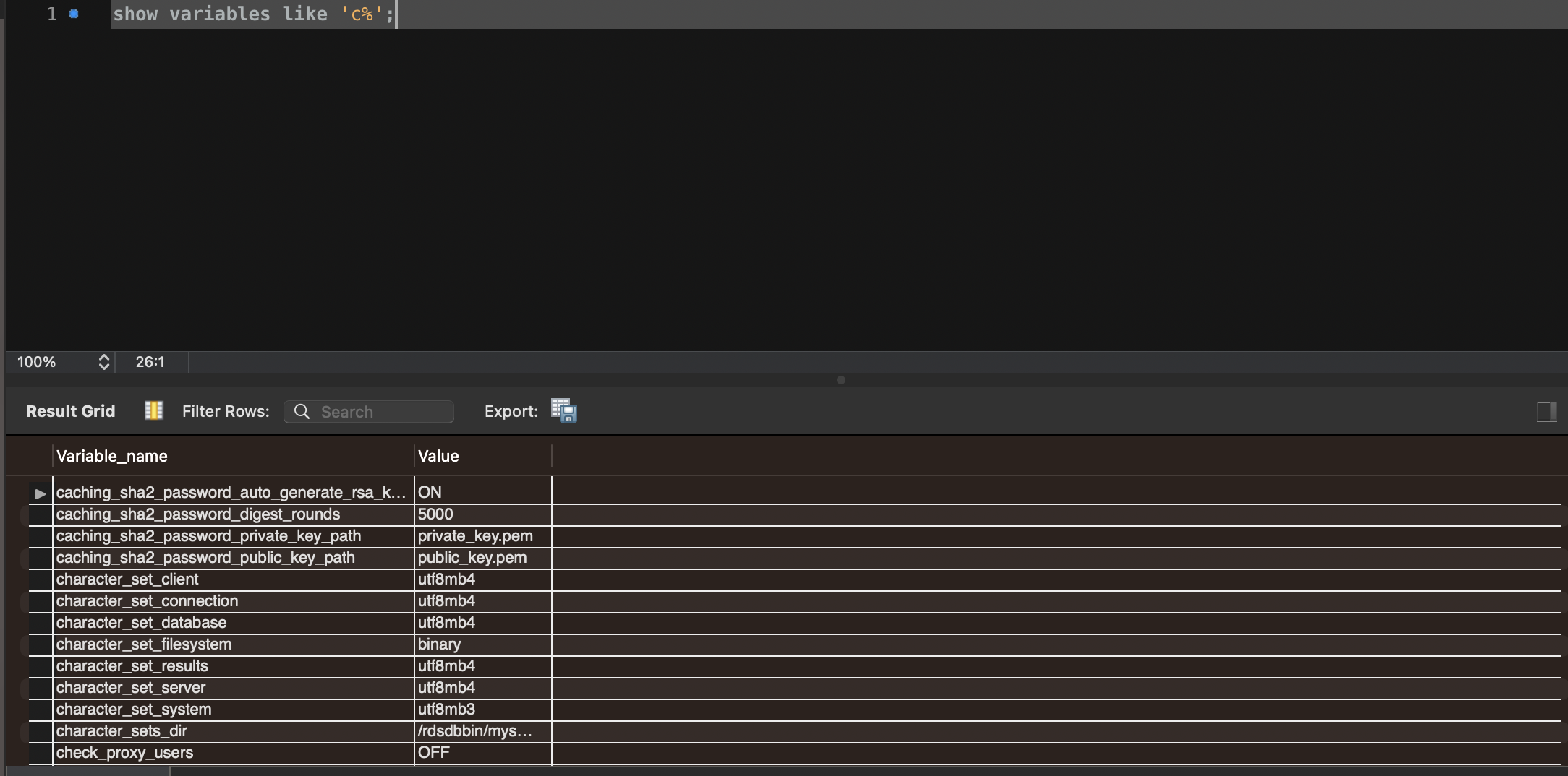 - DB 문자형 관련 설정을 확인할 수 있습니다.