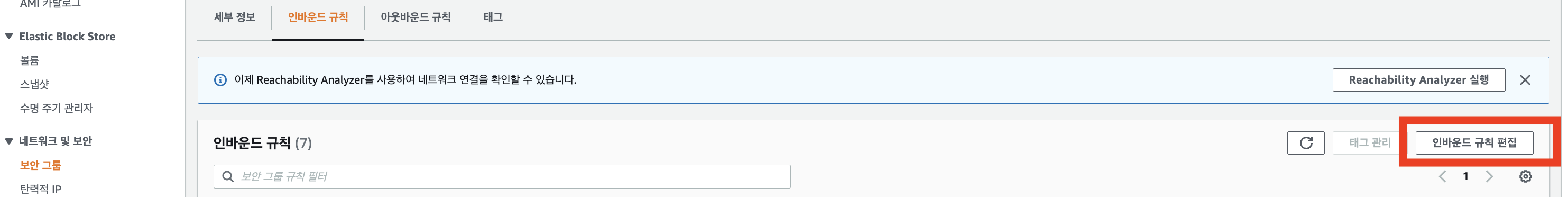 - 인바운드 규칙을 추가하고 변경사항을 저장해주세요.