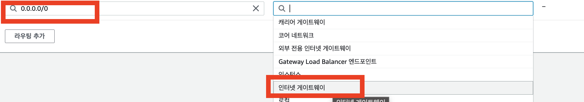 - 인터넷 게이트웨이를 클릭하면 자동으로 igw-xxxxxxxx의 ID가 입력됩니다.