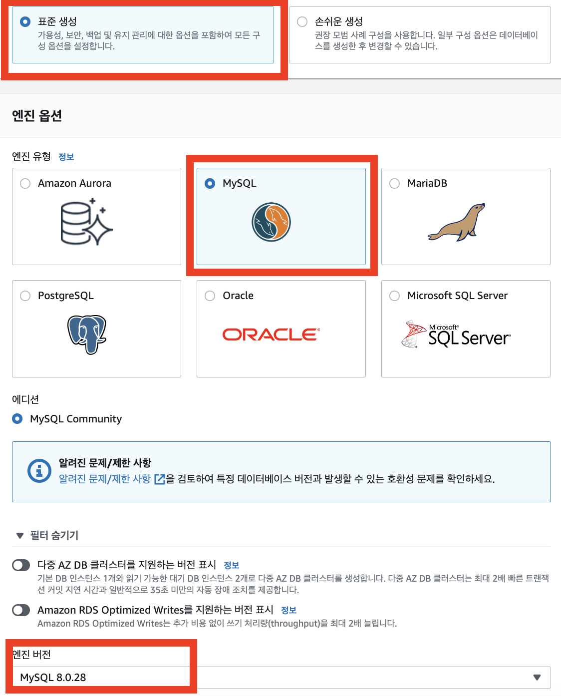- 표준 생성으로 MySQL 8.0.20 버전을 이용하였습니다.