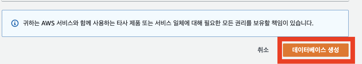 - 이후 데이터 베이스 생성을 클릭합니다.