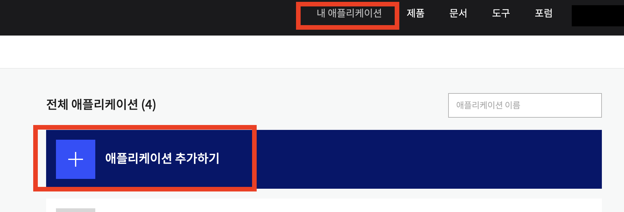 - 내 애플리케이션을 클릭하고, 애플리케이션을 추가를 클릭합니다.