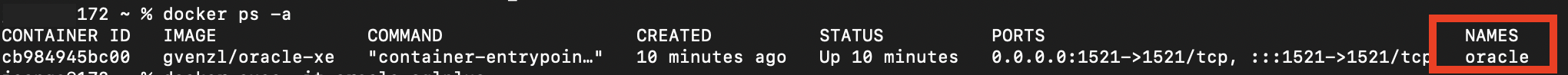 $ docker run -e ORACLE_PASSWORD=pass -p 1521:1521 -d gvenzl/oracle-xe