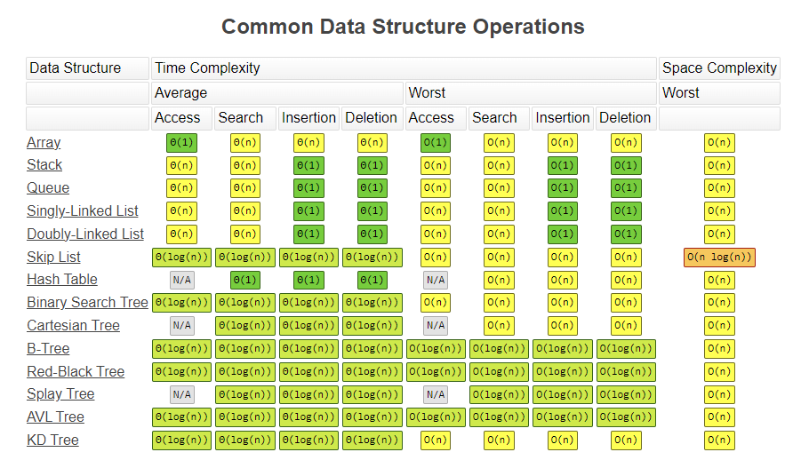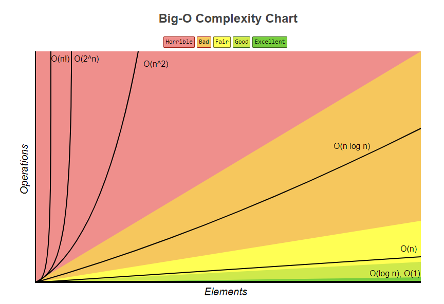 Big-O 표기법은 일반적으로 입력 크기 측면에서 알고리즘의 시간 복잡도를의 상한을 표현하는 방법입니다. 알고리즘이 수행하는 작업 수에 대한 최악의 시나리오를 설명합니다. 불필요한 연산을 제거하여 알고리즘 분석을 쉽게 할 목적으로 사용됩니다. 아래 세 가지 표기법은 시간 복잡도를 각각 최악, 최선, 중간(평균)의 경우에 대하여 나타내는 방법입니다.