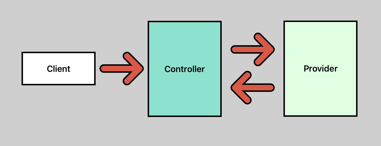- 컨트롤러는 HTTP 요청을 핸들링하고 더 복잡한 일들을 provider에게 위임해야합니다.
