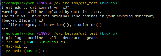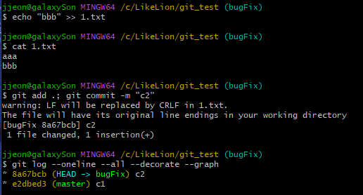 4. 텍스트파일에 글 추가 후 commit (c2)