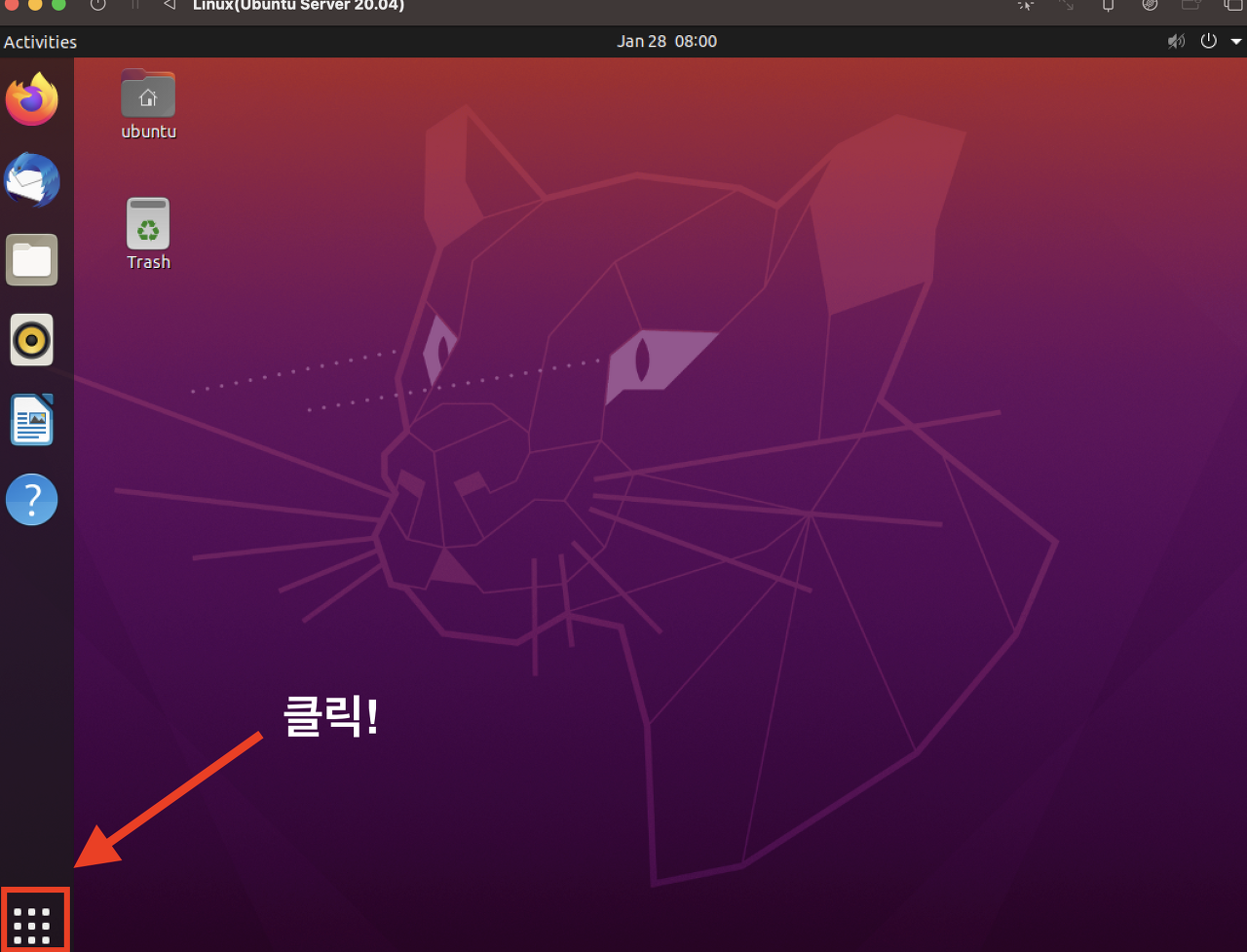 1) 우분투에 로그인하고 아래 사진의 빨간 박스 부분을 클릭합니다.