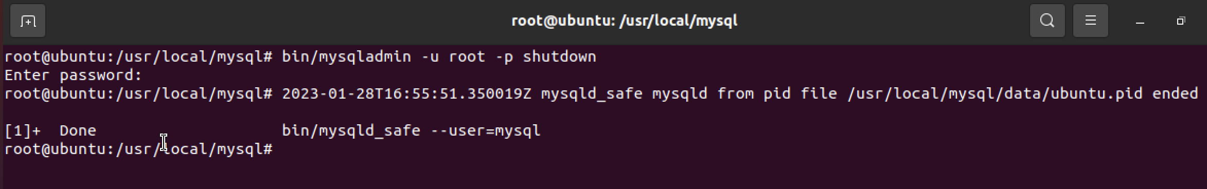 $ bin/mysqladmin -u root -p shutdown