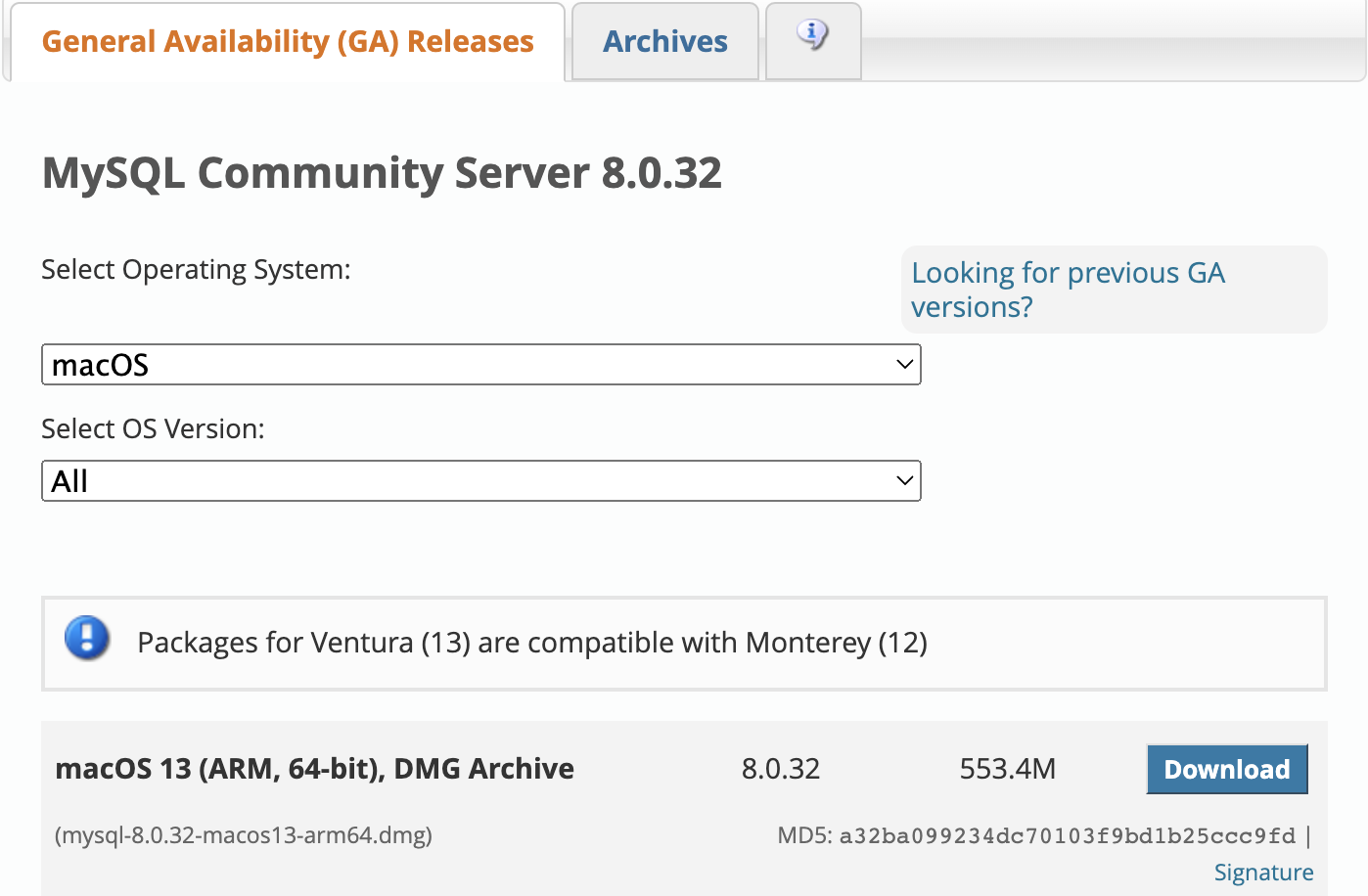 $ wget https://dev.mysql.com/get/Downloads/MySQL-8.0/mysql-8.0.32.tar.gz