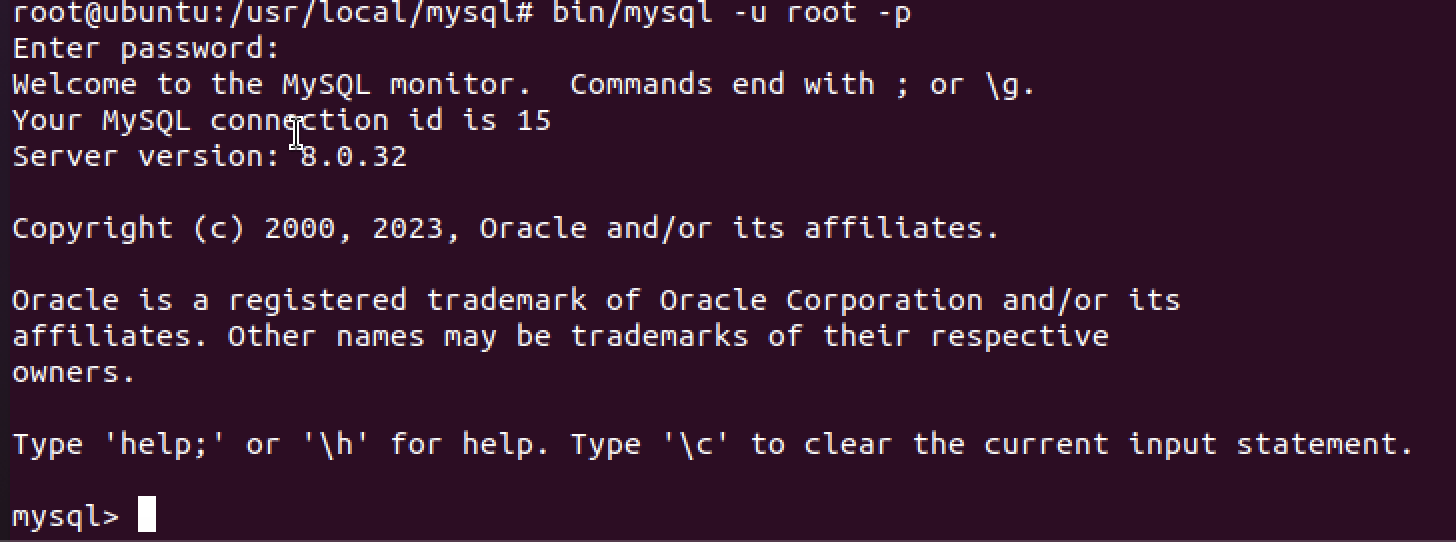 /usr/local/mysql $ bin/mysql -u root -p
